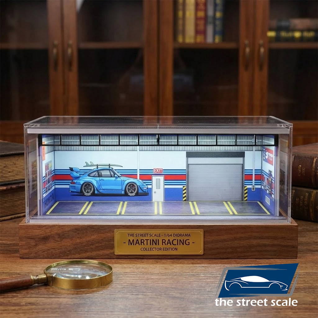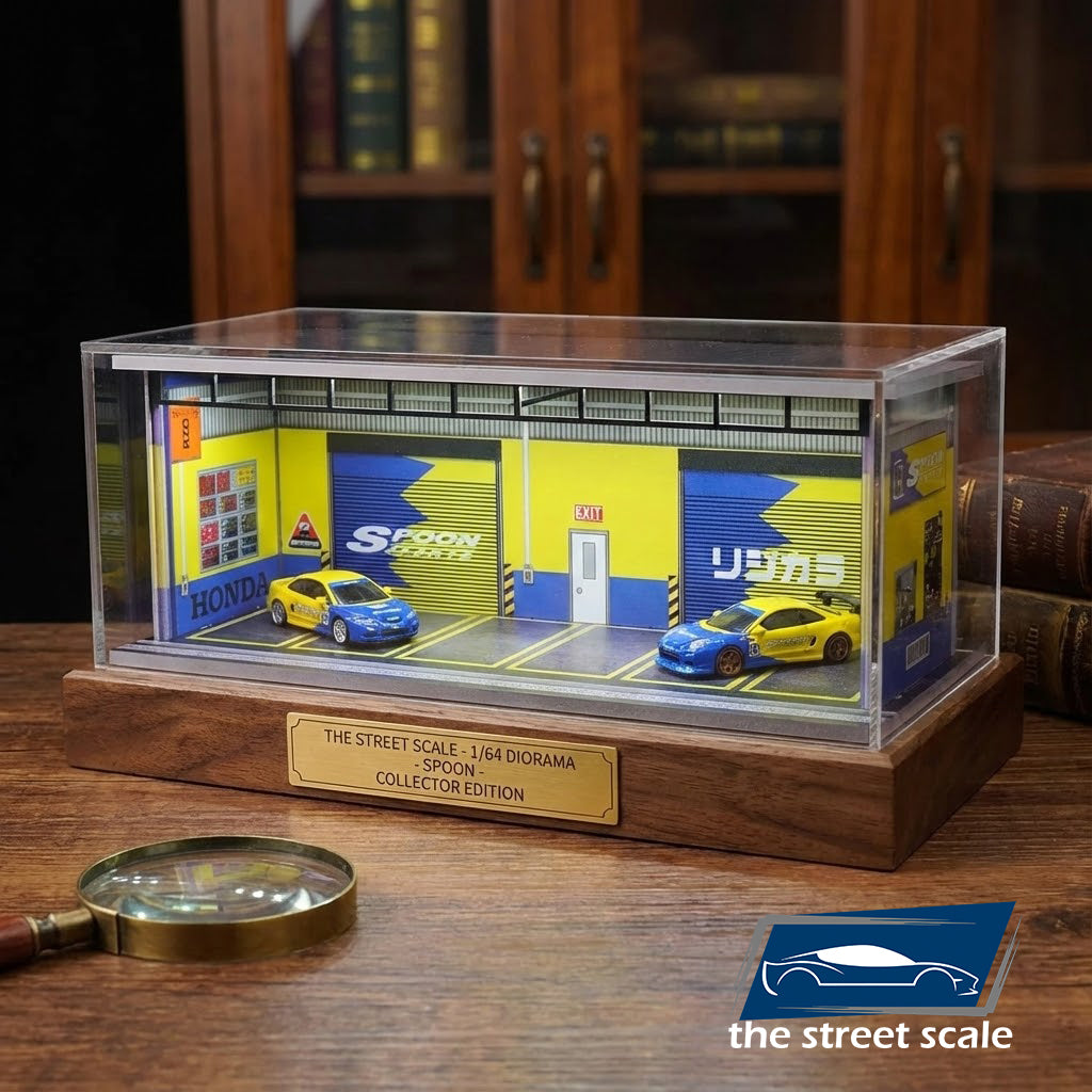 Este diorama de la prestigiosa marca G-FANS recrea con precisión milimétrica la atmósfera de los garajes urbanos y zonas de encuentro del mundo del motor (Car Meets). Diseñado específicamente para la escala 1:64 (Hot Wheels, MiniGT, Tarmac Works), es la pieza definitiva para elevar el nivel de tu colección.