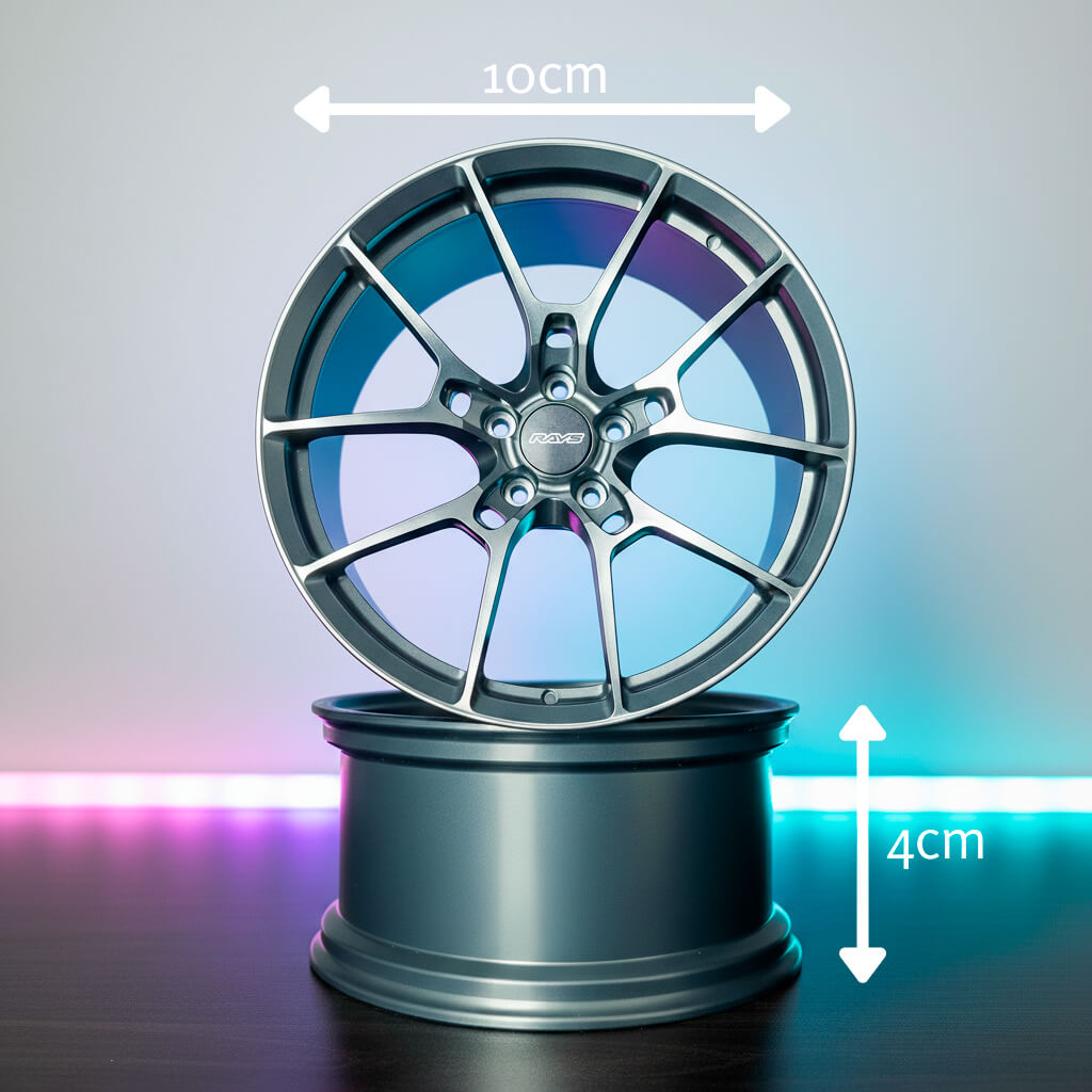 We faithfully reproduce the design of the original forged rims. The cool touch of the aluminum and the weight of the piece will make you feel like you're holding the real thing in the palm of your hand.