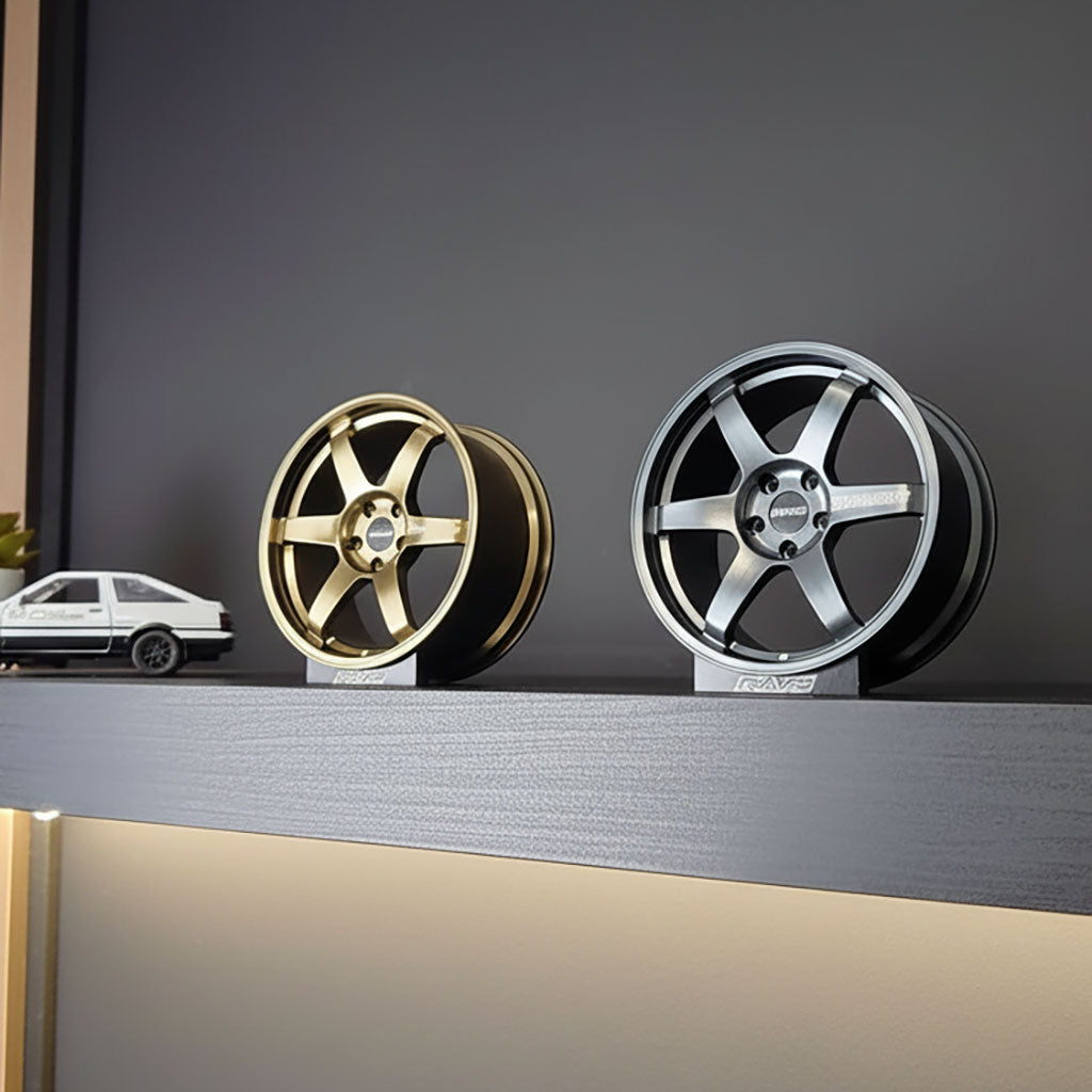 We faithfully reproduce the design of the original forged rims. The cool touch of the aluminum and the weight of the piece will make you feel like you're holding the real thing in the palm of your hand.