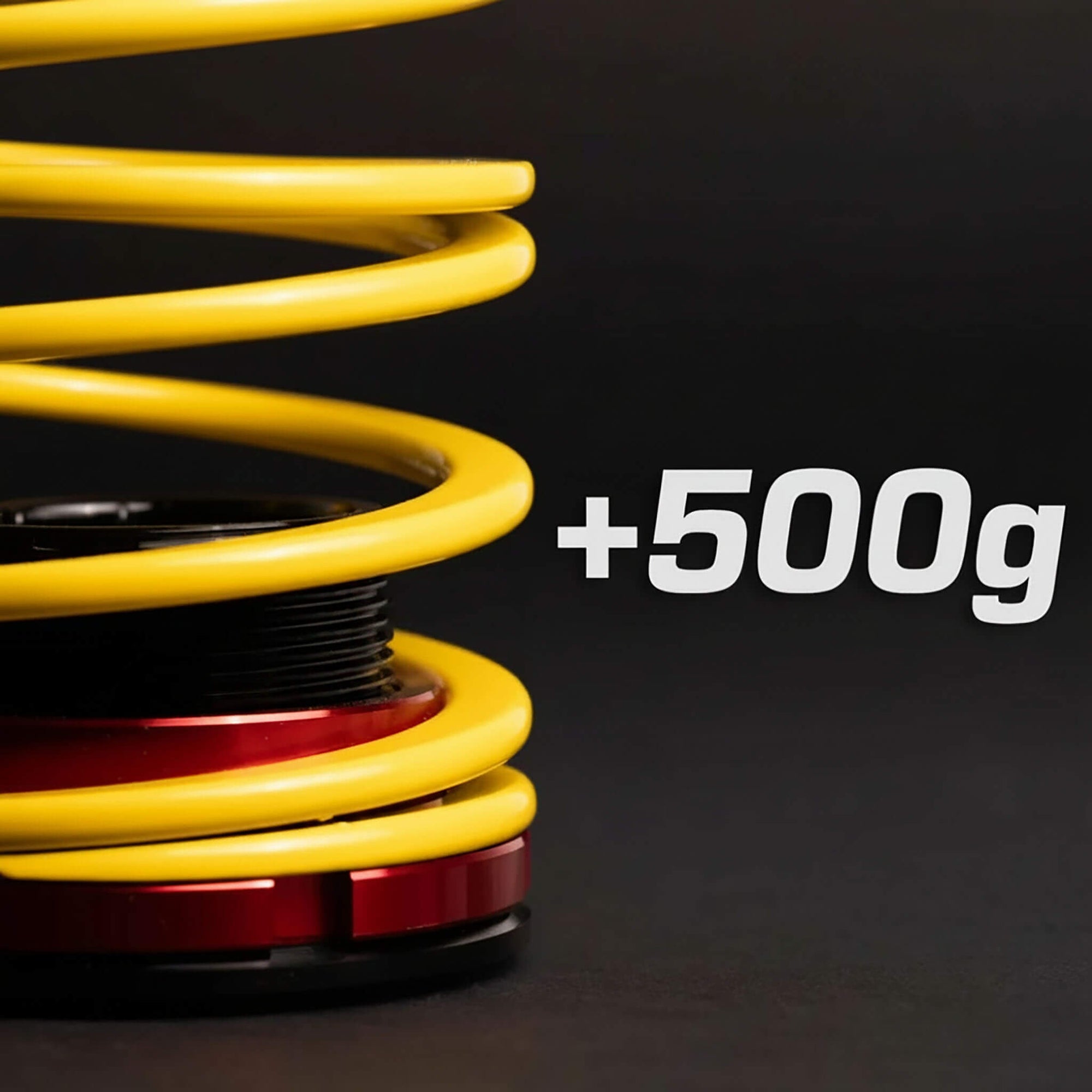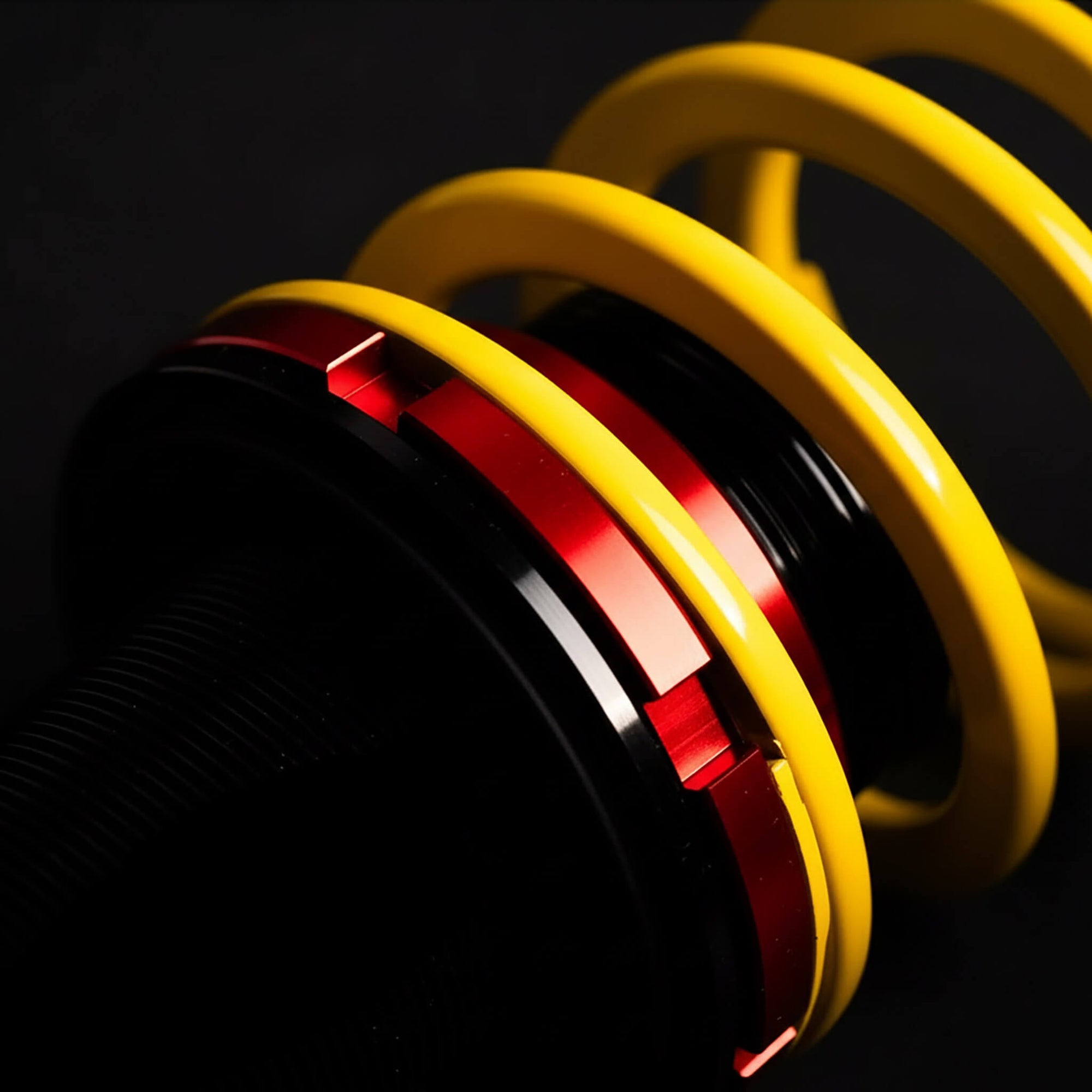 Functional height adjustment: Just like you would when setting up your car before hitting the track. The threaded system and locking rings are fully functional: simply turn them to compress the spring and adjust the stand's height to your liking.
